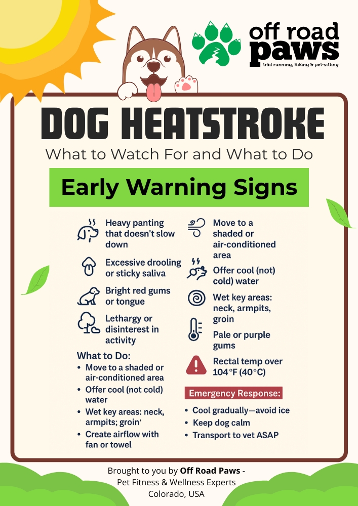 In places like Colorado, the dry climate can be misleading. It might not feel hot to you, but high elevation and strong sun increase the risk of heatstroke—especially on long walks, exposed trails, or blacktop surfaces.